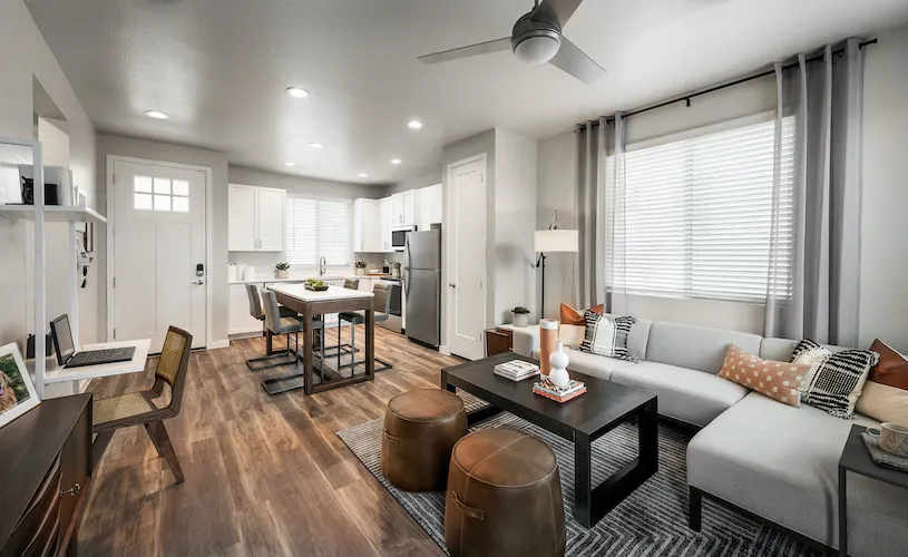 At Village at Mayfair, we combine modern comfort with resort-style living in New Braunfels, TX. Our single-story homes feature smart home technology, quartz countertops, luxury vinyl tile flooring, full-size washer and dryer, private backyards, and upgraded kitchen appliances. Enjoy our secure, gated community amenities like a sparkling pool and sundeck, fire pits, BBQ grill stations, clubhouse, and fitness center. Our pet-friendly community has an oversized dog park, pet spa, and is conveniently located near shopping and entertainment. This is where your best life beginsāschedule a tour today!