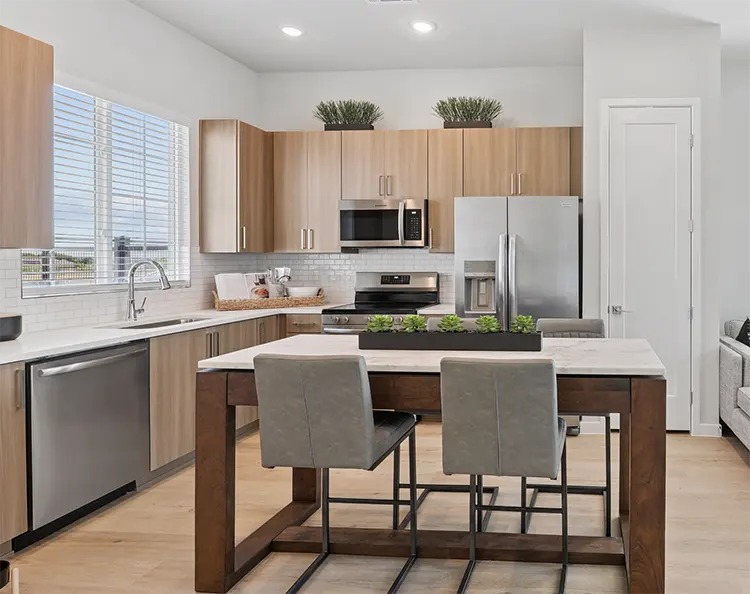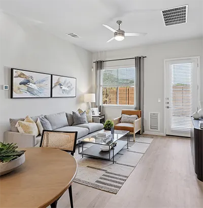 At Village at Mayfair, we combine modern comfort with resort-style living in New Braunfels, TX. Our single-story homes feature smart home technology, quartz countertops, luxury vinyl tile flooring, full-size washer and dryer, private backyards, and upgraded kitchen appliances. Enjoy our secure, gated community amenities like a sparkling pool and sundeck, fire pits, BBQ grill stations, clubhouse, and fitness center. Our pet-friendly community has an oversized dog park, pet spa, and is conveniently located near shopping and entertainment. This is where your best life beginsāschedule a tour today!