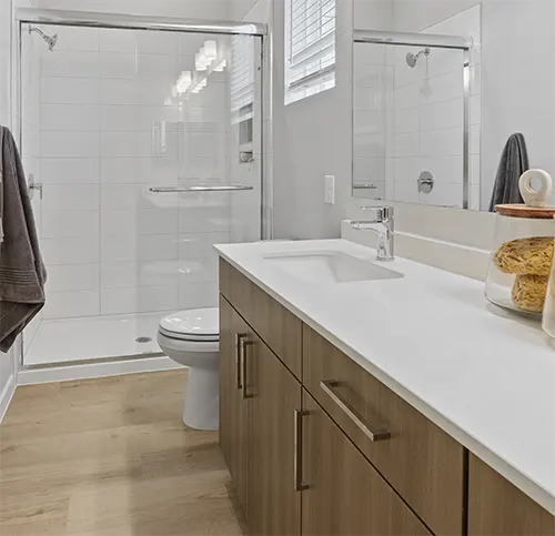 Unwind in sleek bathrooms featuring tub/shower combinations, ample storage, and polished finishes. These thoughtfully designed spaces offer both functionality and a relaxing retreat after a long day.